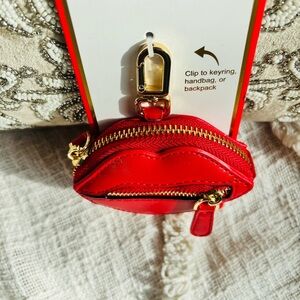 Elegant bag charm with gold and red accents. Ideal for keyrings or handbags.