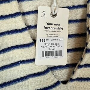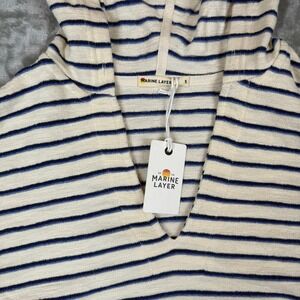 Marine Layer Playa Hoodie Women Small Blue Cream Striped *No Drawstring* $98 NWT