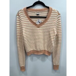 American Eagle XS Striped Cropped Sweater Peach Cream Soft Knit NWT Cozy Y2K