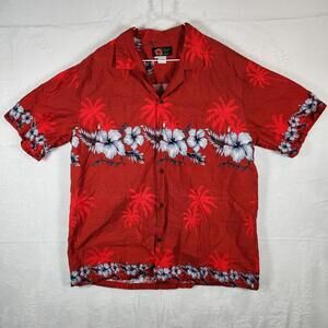 Ali'i Fashions Hawaiian Shirt Red Floral Mens Size XL