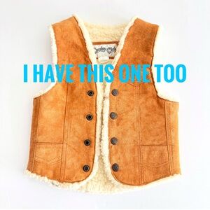 Kids real leather gray blue tan brown colorblock Sherpa lined button up vest