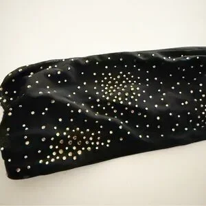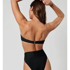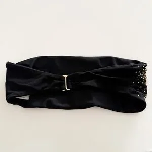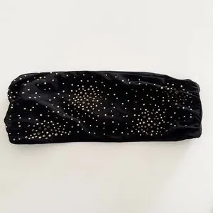 Black strapless bandeau bikini top with rhinestone studded embellishments