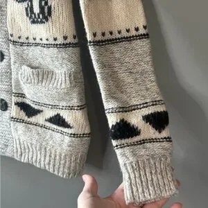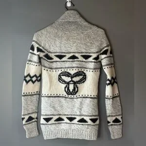 Aritzia TNA size small 100% lambswool button-up cardigan sweater in grey/white