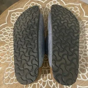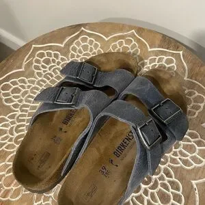 Stylish slate blue sandals with dual adjustable buckles. Ideal for everyday comfort. Size 39