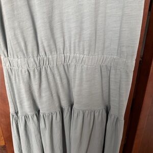 Style: Style: Yes, it's a dress. But it looks like a tank paired with a Stonewashed Cotton Poplin tiered midi skirt to create a statement-making yet relaxed look. Details: A-line, Bra friendly, Elastic waist, Ribbed neckline, Tiered skirt Length: 49 1/2".