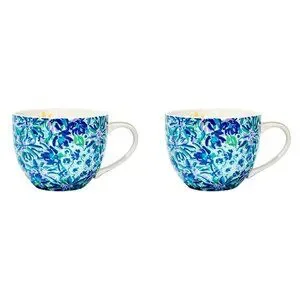 LILLY PULITZER Teal Blue & Green Ceramic Mug Set (2 Piece) SO PRETTY & NEW!