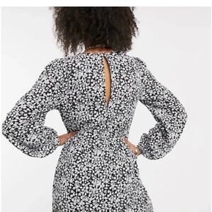 Stylish blouse with floral design. Features a classic black and white pattern.