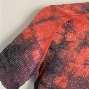 Colour is Disconnect Marble Dye Autumn Red / Graphite Grey. Please note due to the unique dye, the shirt is different from the stock photo and the lighting in my house makes the grey colours look darker than they are. They are grey not black