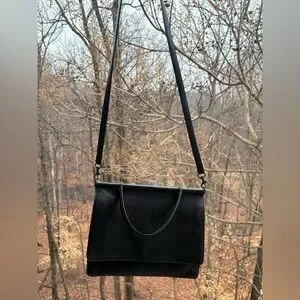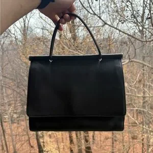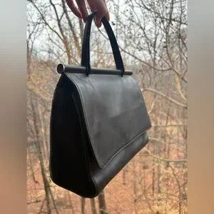 The design features a structured silhouette with a front flap, sturdy top handles, and a detachable crossbody strap for versatile carry. The dowel-reinforced top structure gives the bag its elegant shape while still maintaining the soft feel of glove leather.
