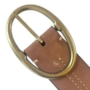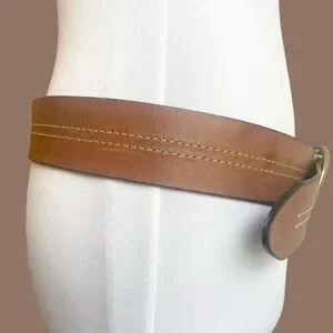 Wide Brown Leather Belt Oval Buckle 90s Size S/M