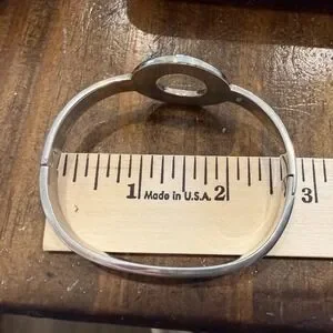 Modernist Circle Bangle Bracelet Silver Tone Minimalist Geometric Hinged