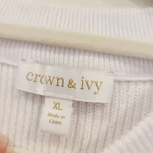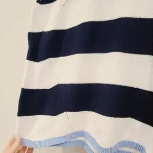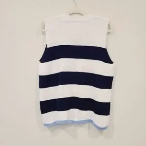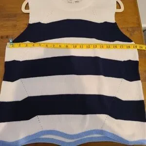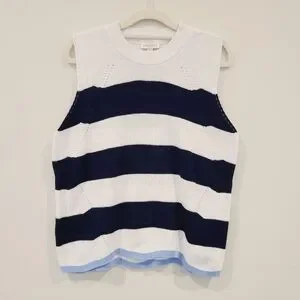 Crown & Ivy White And Navy Striped Cotton Knit Sweater Tank Top