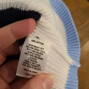 Crown and Ivy white and navy striped knit tank top, 100% cotton, nice stretch, powder blue wave hem. In excellent preloved condition