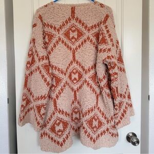 NWT POL oversized boho knit cardigan in cream and rust geometric Aztec pattern.