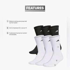 Stay active with adidas crew socks. Cushioned for comfort. Arch compression for support. Ideal for sports and daily wear.