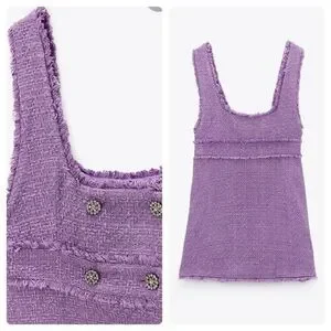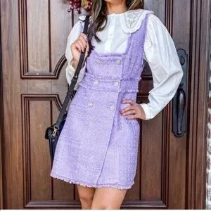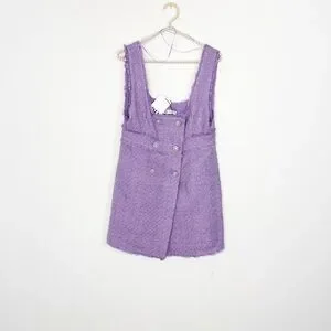 New with tag Zara Bloggers and influencers favorite Lilac purple Tweed Rhinestone Button Dress. This is the short version