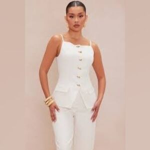 Fashion Nova Cream Linen Buttoned Tank Top - Crop
