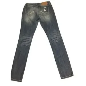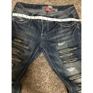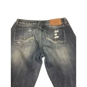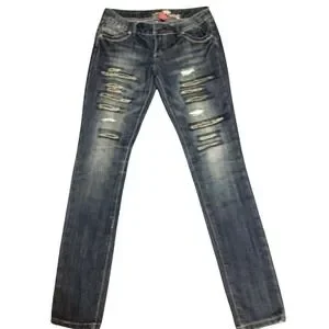 Almost Famous Women's Size 5 Distressed Whiskered Denim Jeans Ripped Streetwear