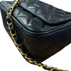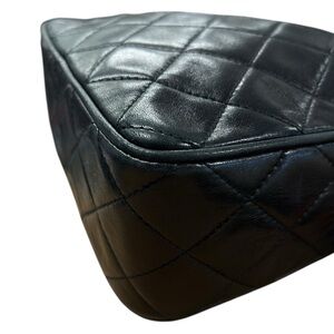 Elevate your collection with this timeless vintage circa 1994-1996 by Karl Lagerfeld Chanel camera bag. Crafted from luxurious black lambskin leather and finished with the iconic diamond-quilted pattern. The front features the classic interlocking CC logo, subtly embossed for an elegant and understated finish.