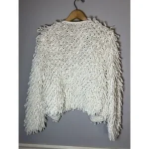 Open Knit Curly Que Cardigan Womens Size Medium Cream ivory Sweater