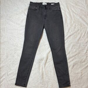 Chic charcoal skinny jeans by Frame Denim. Perfect for a sleek, modern look. Comfortable and stylish.