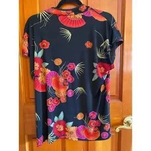 Chico's Travelers Mandarin Wrap Top Floral Asian Print Size 3 (XL)
