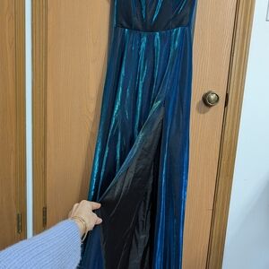 B. Darlin Black and Blue Shimmer Dress With Slit Prom Or MOB