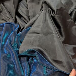 This fabric is so pretty, the colors change from a black, to blue to green like color. The whole dress is nicely lined, with a zipper closure.