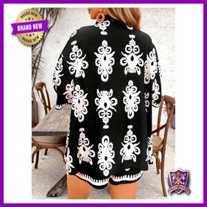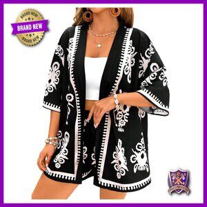 Style: Open front kimono and tie front shorts set