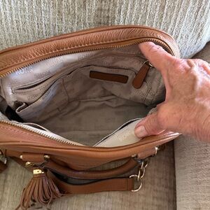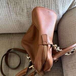 Michael Kors medium brown grained leather with crossbody strap appr 8 x 10