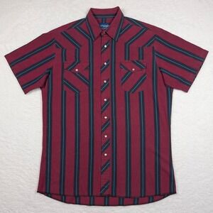 Wrangler Shirt Mens LT Red Stripe Western Pearl Snap Front Short Sleeve Cowboy
