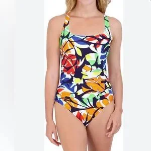 NWT Nautica Women's Standard One Piece Crossback Tummy Control Quick Dry Small