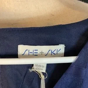 She + Sky Navy Textured Peplum Blouse NWT Boutique Top