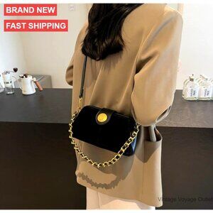 Small Square Crossbody Bag with Gold Chain Strap Faux Suede