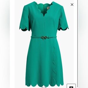 Step out in style with this elegant green scalloped dress. Perfect for any occasion, this dress features a flattering silhouette and a chic belt detail.