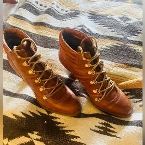 Beautiful brown leather size 9 boots with 2 1/2 inch heel. Rubber sole with great traction (no slip) Features a lace-up leather front, ready to wear for any occasion.