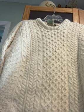 Authentic Aran Isles Knitwear Fisherman Sweater, 100% Merino Wool, Large — Made in Ireland.