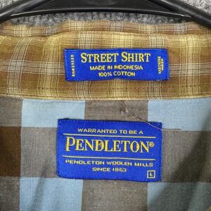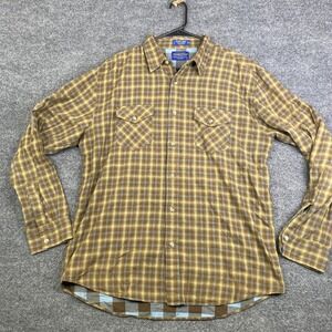 Pendleton Mens Street Shirt L Brown Plaid Cotton Western Yoke Button Down L/S
