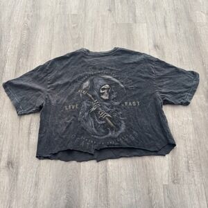 Affliction Reaper Live Fast shirt Y2K Skull Skeleton Grunge Size Large Cut Crop