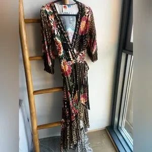Anthropologie Farm Rio Black and Red Floral Wrap Dress