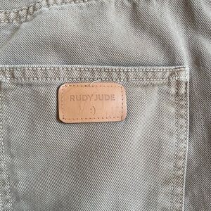 Rudy Jude utilities, RJ3, or equivalent to 28/29 jeans. Olive color, super soft denim, some stains and discolorations and some threading coming out of back pocket (picture) but otherwise in good condition. These are hard to find color way. MSRP $300