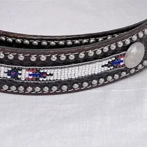 Vintage Aztec design handmade leather belt, men’s size 32-33 waist