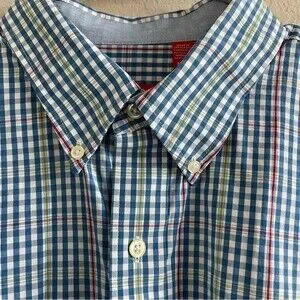 IZOD Long Sleeve Plaid Button Down Mens Shirt XL 100% Cotton
