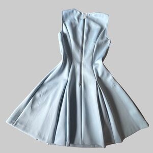Chic light blue mini dress. Sleeveless with a flared skirt. Perfect for stylish outings.