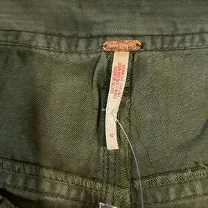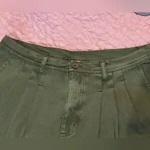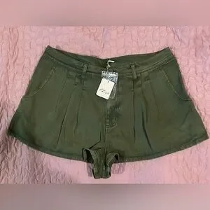These designer shorts made by Free People will quickly become a staple in your summer wardrobe. Army green. Women’s size 10. Shorts feature a pleated front, belt loops, 2 front pockets, a mid rise waist and