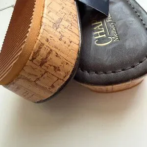 Chaps Women’s Casual Sandals Low Wedge Heel. Memory Foam Brown Size 7-8 ~NWT!!