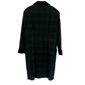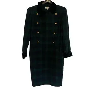 Elegant midi dress with a classic plaid pattern. Features gold buttons and a sophisticated collar. Perfect for any occasion.