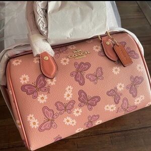 Elevate your style with this Coach women's bag featuring a charming pink butterfly print. Perfect for adding a touch of elegance to any outfit.