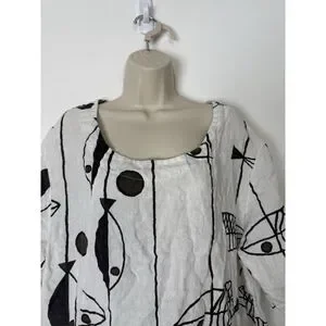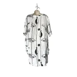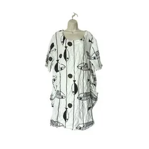 Vasna Fish Print Art to wear Linen Dress Made in Italy Size 1X Lagenlook Beach