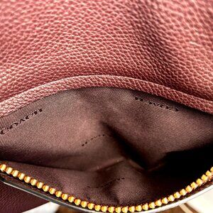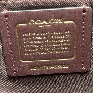 • Bag, burgundy, primrose, satchel, 2017, Coach bag, burgundy purse, crossbody strap, detachable, zip pockets, gold hardware, creed, patch, serial number,Convertible, leather, suede, crossbody, bag, 2017 coach bag